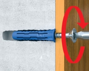 3) Insérer la vis du diamètre requis dans la cheville au travers de la pièce à fixer et serrer