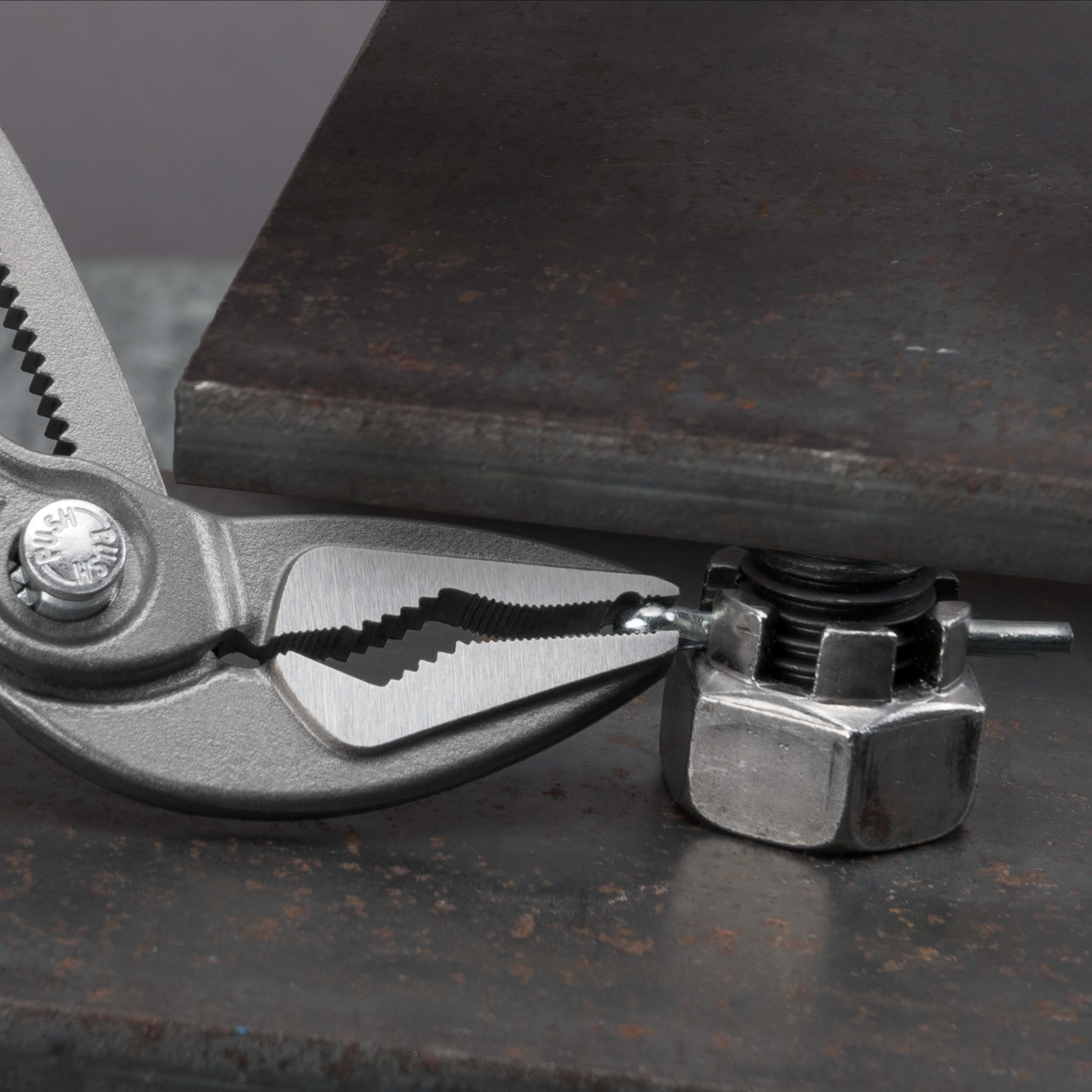 ✅ Mâchoires longues et étroites avec denture de préhension frontale : maintien sûr des vis, boulons et pièces rondes idéale pour les travaux d’entretien, de maintenance et de réparation